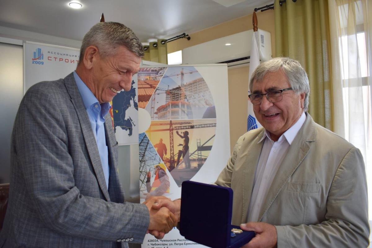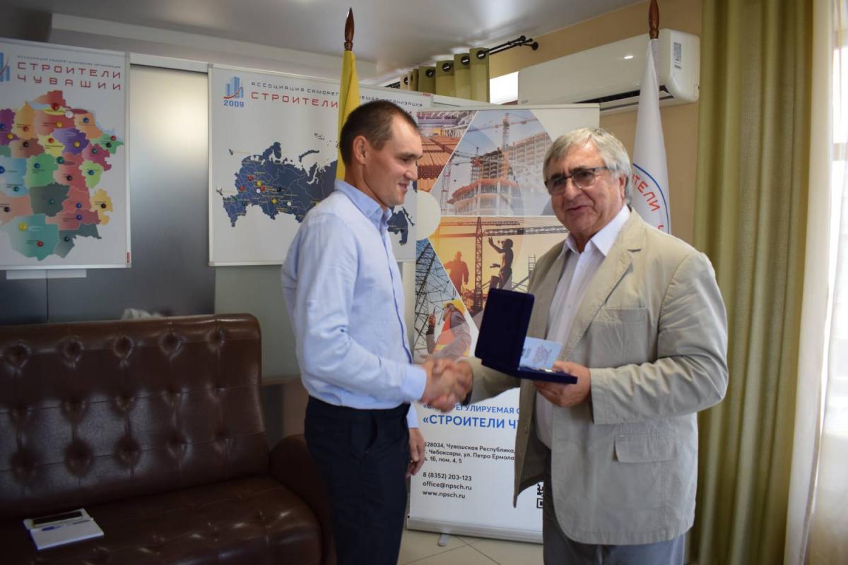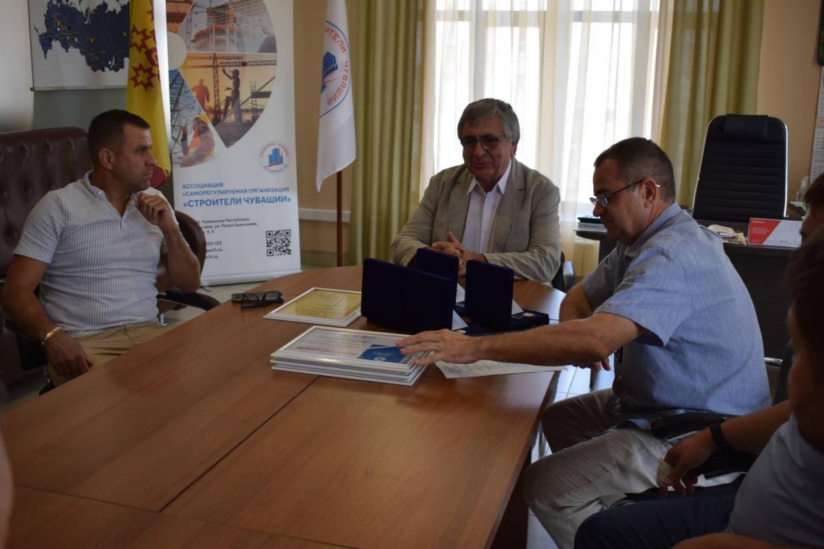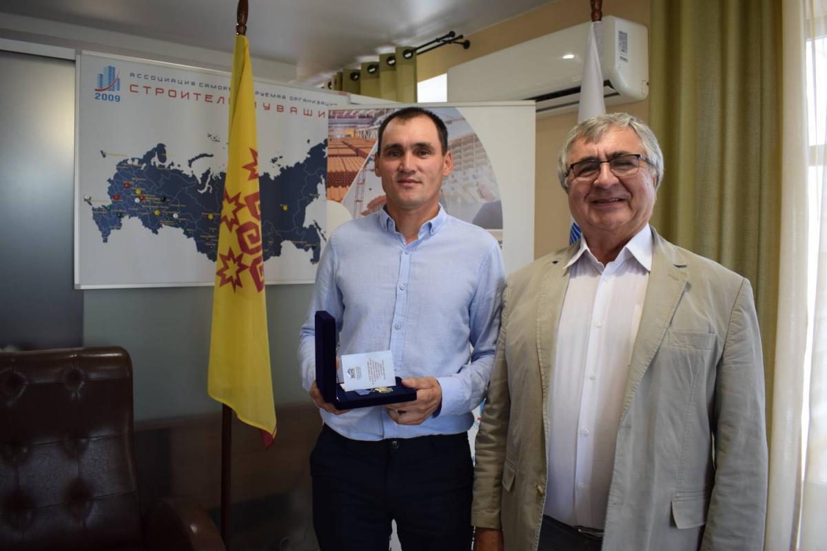 Председатель Правления В. Скосырский вручил награды НОСТРОЙ работникам организаций, состоящих в Ассоциации «Саморегулируемая организация «Строители Чувашии». 1 августа 2024 г.