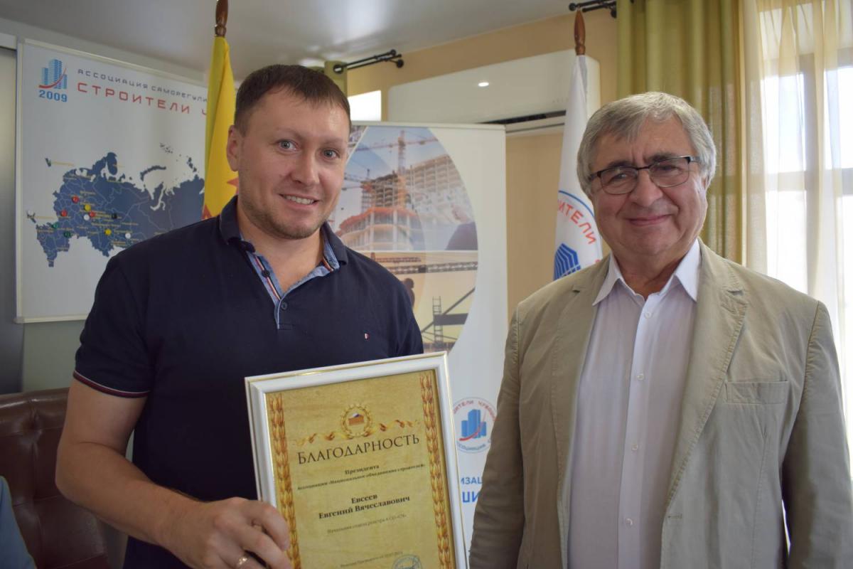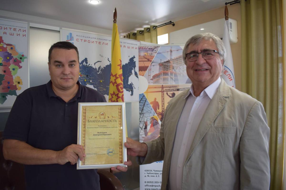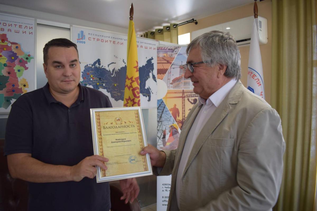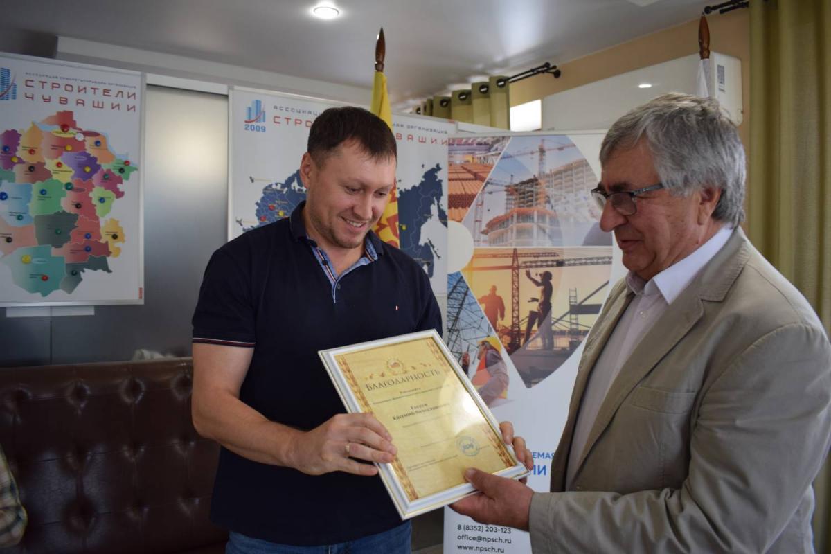 Председатель Правления В. Скосырский вручил награды НОСТРОЙ работникам организаций, состоящих в Ассоциации «Саморегулируемая организация «Строители Чувашии». 1 августа 2024 г.